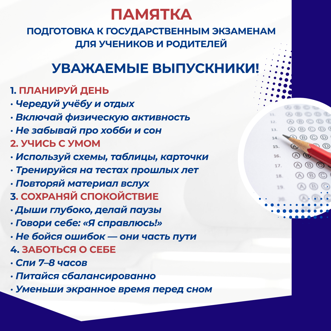 Вниманию выпускников и родителей! Памятка по подготовке к государственным экзаменам.
