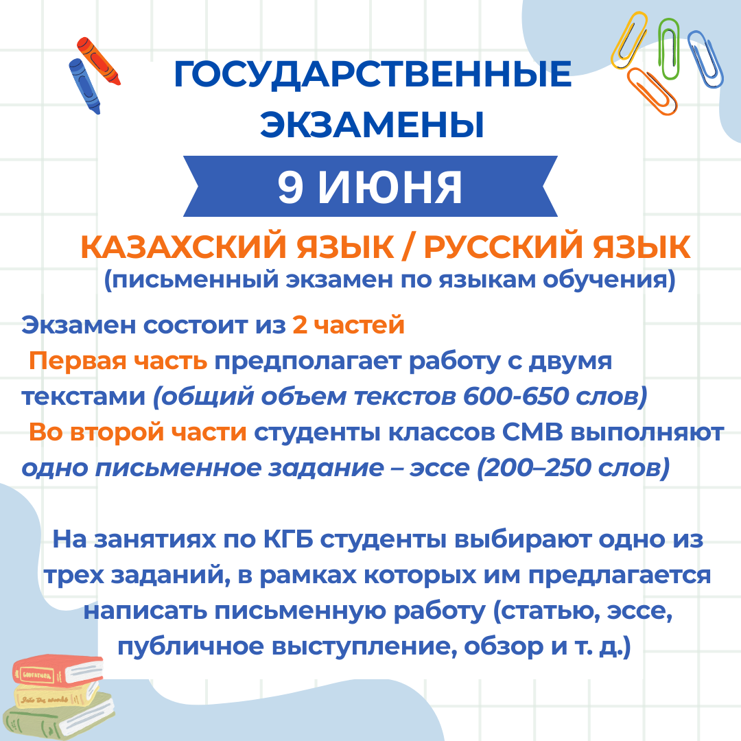 11 сынып оқушыларының назарына! Мемлекеттік емтихандар туралы ақпарат.
